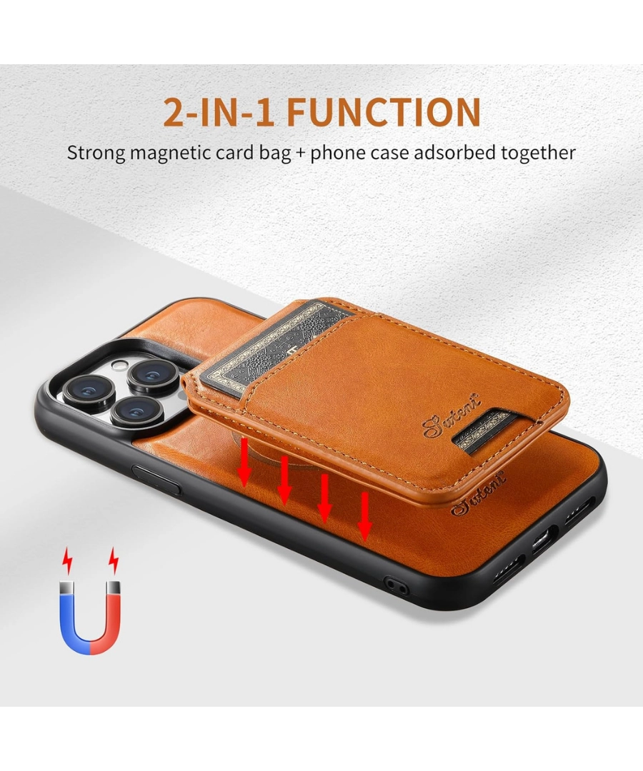 Wallet Case, Magnetic 2 in 1 Detachable Card Holder with MagSafe, Vintage Leather RFID Blocking Flip Kickstand Case