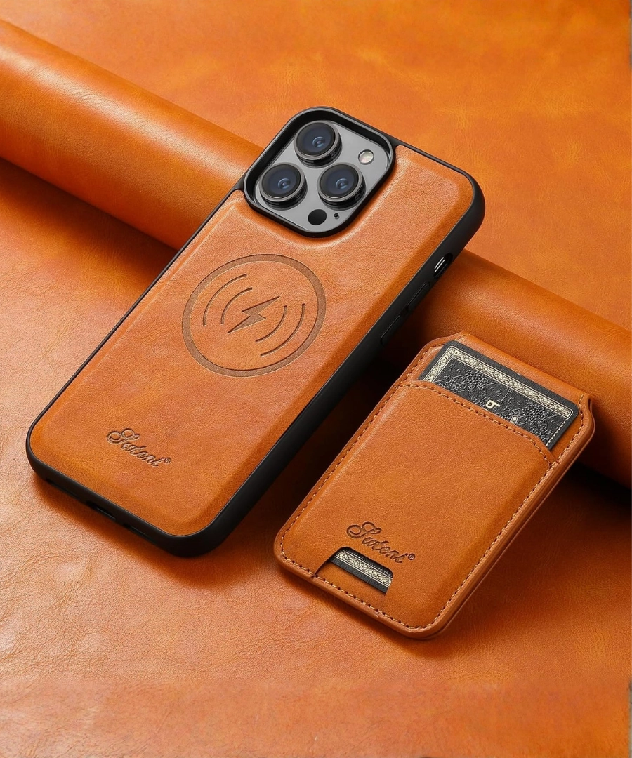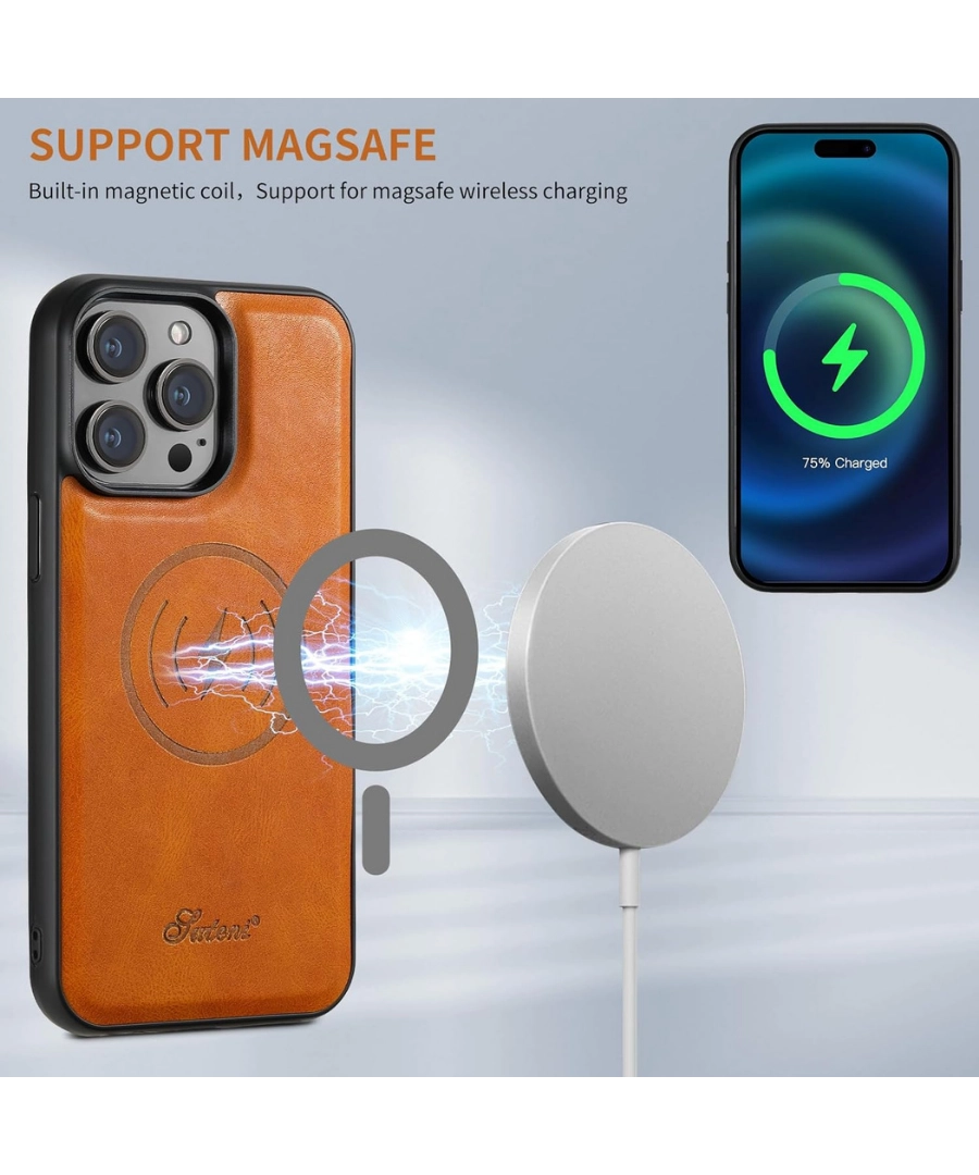 Vintage Leather Wallet Case, Detachable Card Holder with MagSafe
